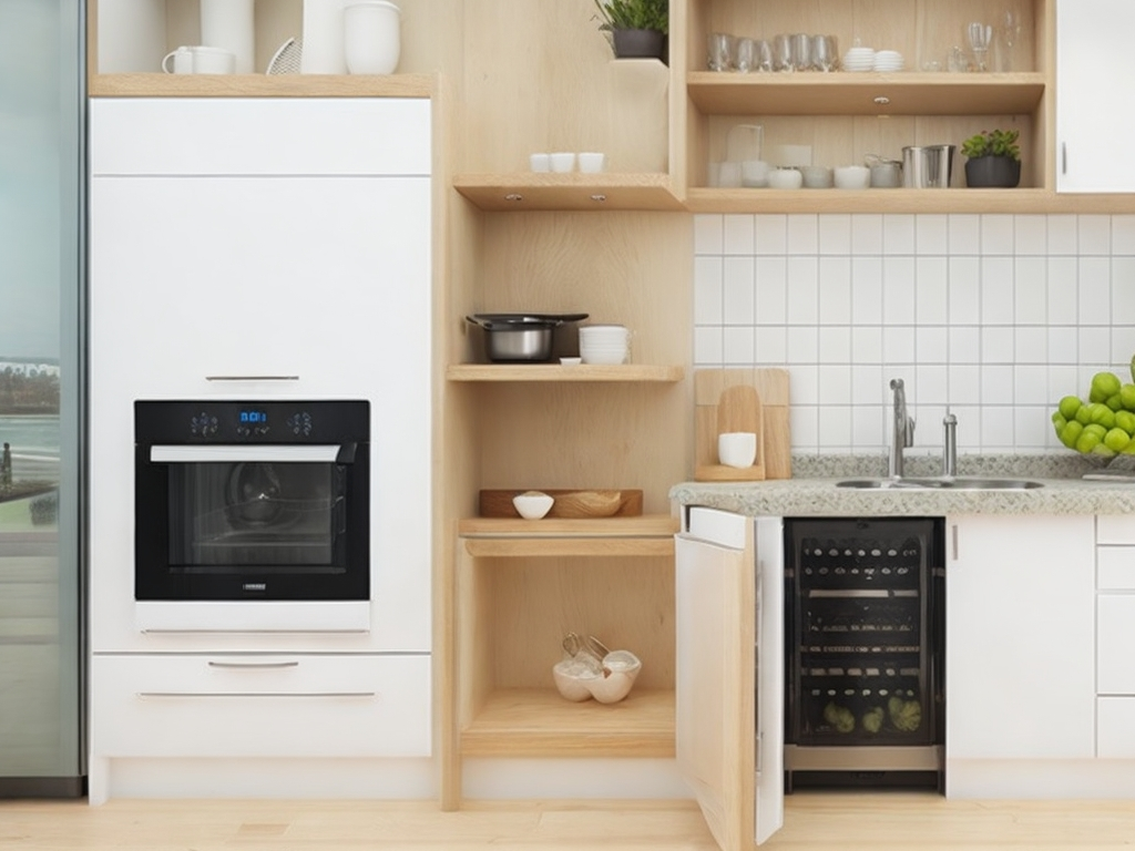 Designing an efficient and stylish layout is involved in adapting your kitchen to small spaces and open-concept designs, taking into account the limited space available. To make the most of your small space, choose appliances wisely, integrate appliances wherever possible, and house smaller appliances in cabinets.